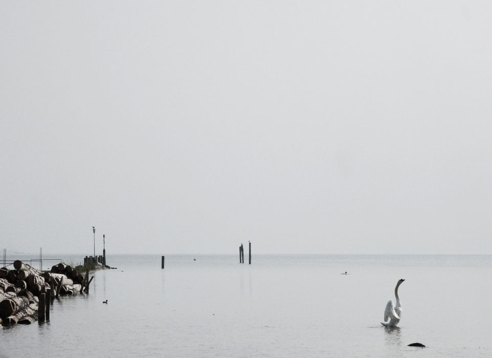 Ships appear on the horizon, the lake becomes a sea and beyond it, one can sense another continent. The clouds above reflect the same expanse.